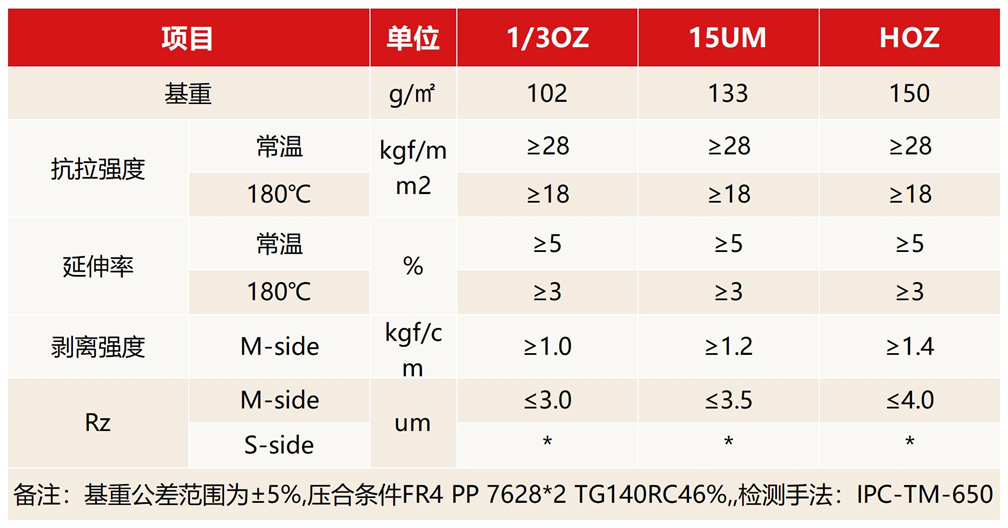 通過(guò)特殊的原箔生產(chǎn)工藝與后處理處理工藝,調(diào)整銅箔的微細(xì)結(jié)構(gòu),如晶粒大小、分布、 結(jié)晶位向及分布的狀態(tài),來(lái)降低銅箔輪廓度,降低PCB端產(chǎn)品應(yīng)用中信損,拓展PCB端產(chǎn)品 應(yīng)用領(lǐng)域。/The profile of copper foil can be reduced by adjusting the fine structure of copper foil, such as grain size, distribution, crystal orientation and distribution, through special raw foil production process and post- treatment process, so as to reduce the loss of PCB end products and expand the application field of PCB end products.